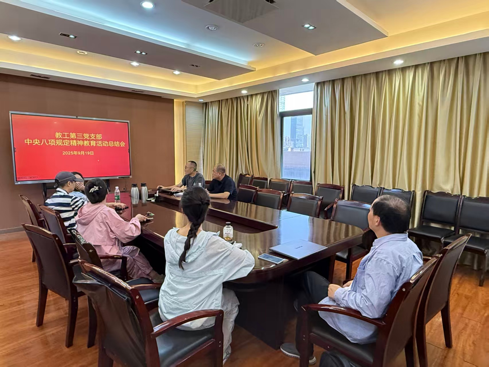 为持续巩固拓展学习教育成果,深入贯彻落实中央八项规定精神,推动作风建设常态化长效化,根据学校党委统一部署,教工第三支部于9月19日下午组织召开深入贯彻中央八项规定精神学习教育活动总结会。