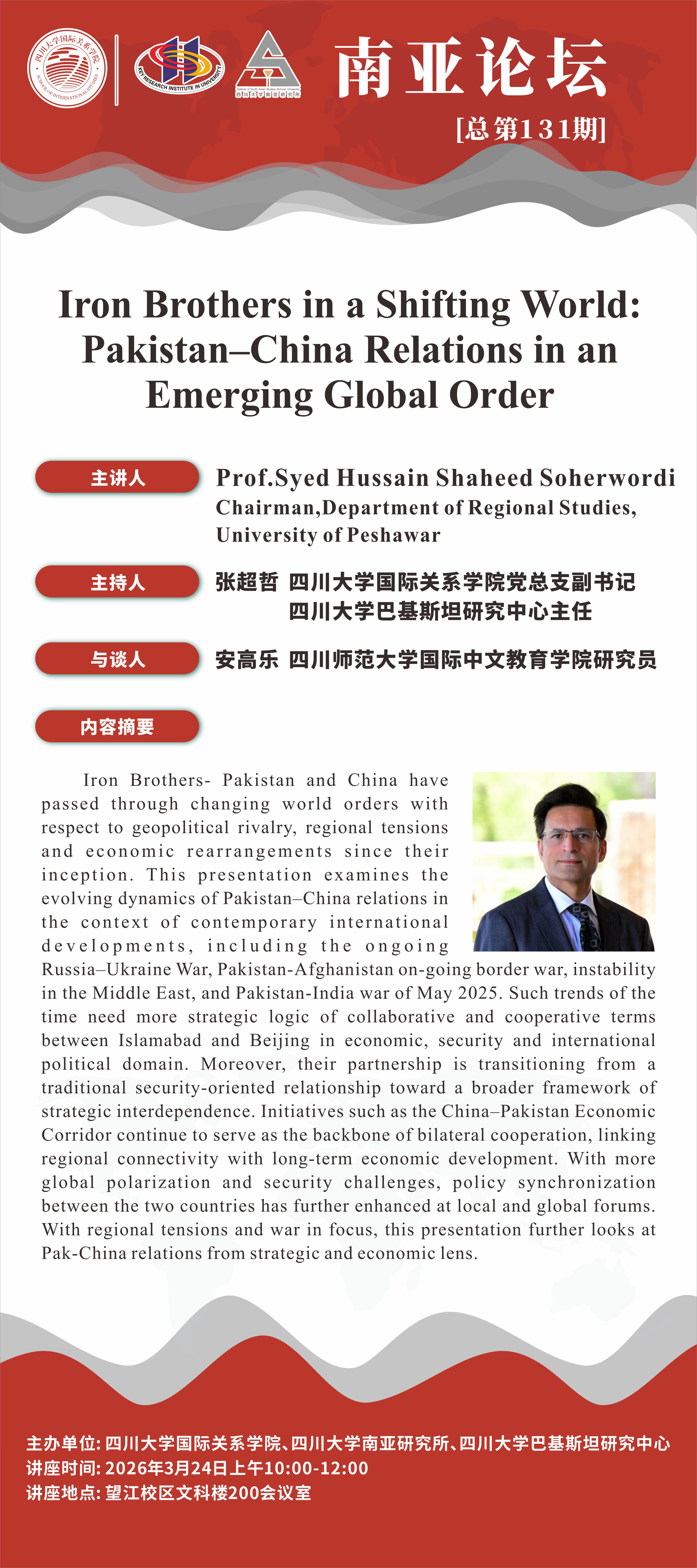 下一条:学术讲座预告 | Mir Sherbaz Khetran:The Role of the China-Pakistan Economic Corridor in Pakistan's Economy