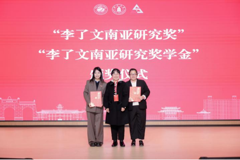 大会还举办了“李了文南亚研究奖”及“李了文南亚研究奖学金”颁奖仪式,首届评选有1位教师、2位学生获奖。丁忠毅介绍了奖项的设立背景和宗旨,四川大学中国南亚研究中心首席专家邱永辉教授为获奖者颁奖。