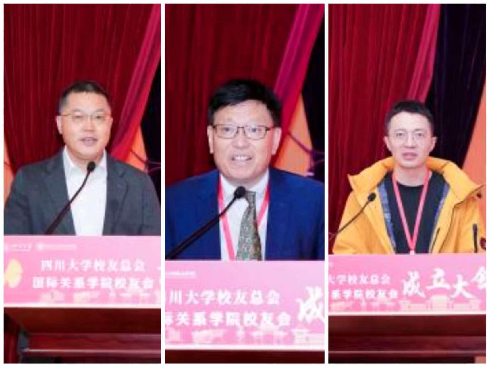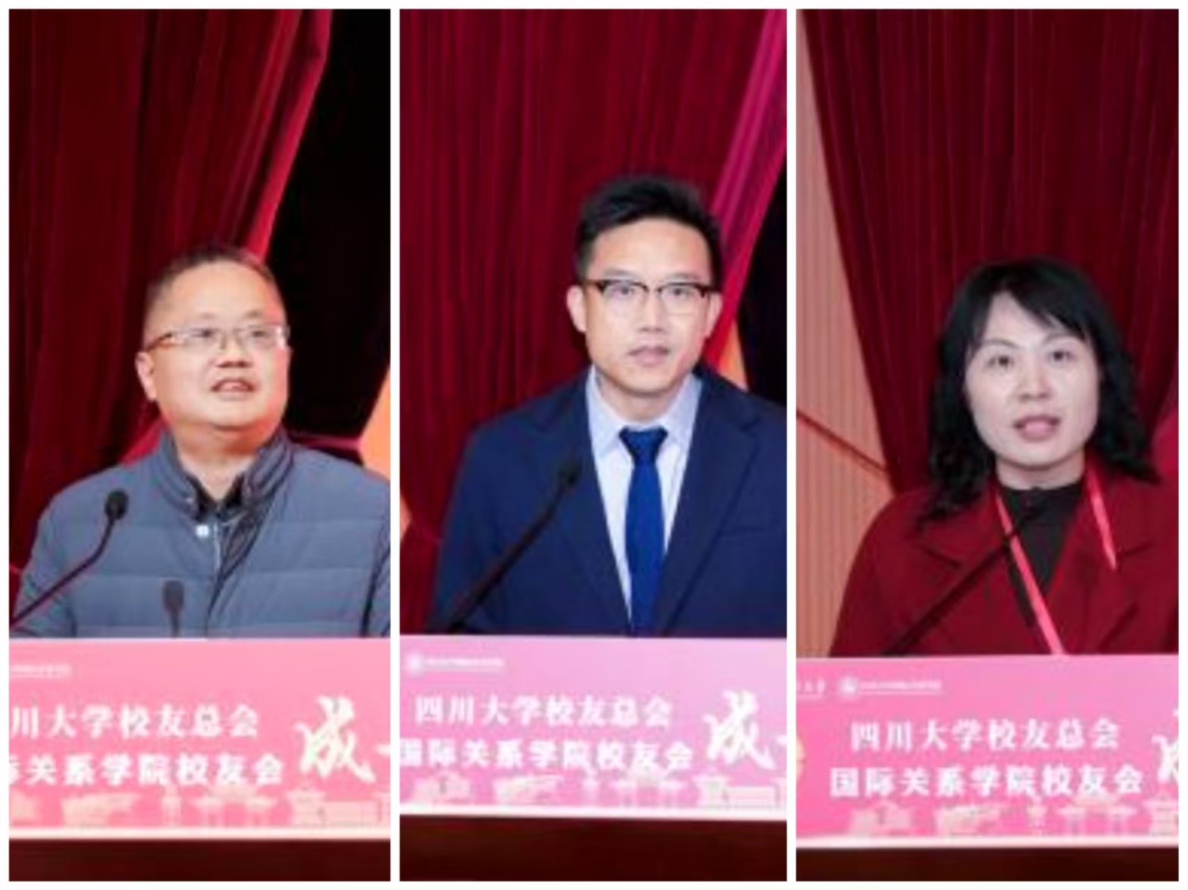 在校友代表发言环节,1991级校友国金期货有限责任公司党支部书记、董事长李蒲贤先生,1989级校友深圳大学区域国别与国际传播研究院院长戴永红教授和2022级校友西藏出入境边防检查总站阿里支队普兰边境派出所三级警长杨聪先后发言,表达了对母校培育的感恩之情和对国际关系学院未来美好发展的良好祝愿。