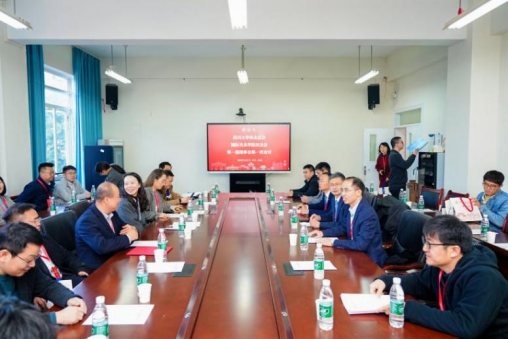 丁忠毅作学院建设与发展情况汇报,系统介绍了学院在人才培养、科学研究、社会服务、国际国内交流合作等方面的成就。