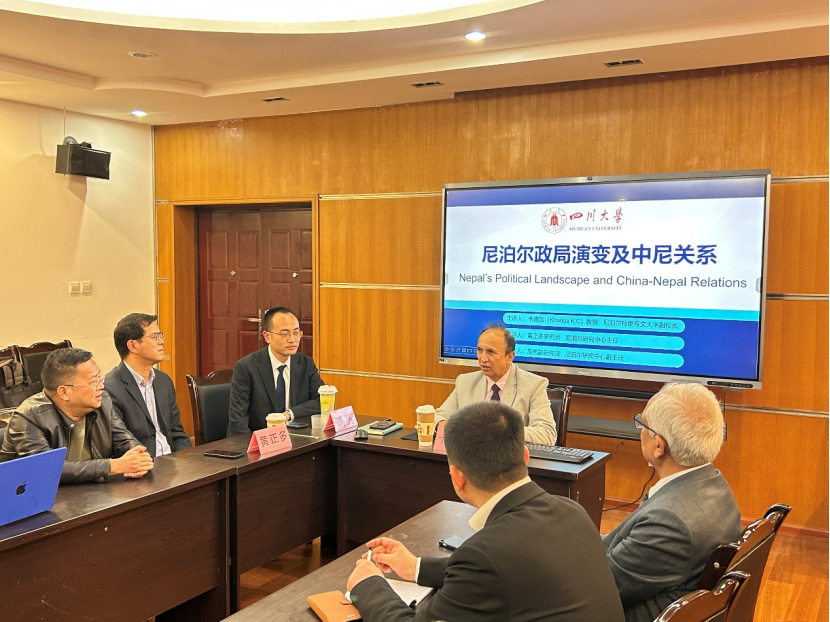 2026年3月27日晚上,尼泊尔特里布文大学副校长卡德加(Khadga K.C)教授受邀为师生作了题为“尼泊尔政局演变及中尼关系”的专题讲座,讲座由四川大学尼泊尔研究中心主任黄正多研究员主持,特里布文大学教务副校长柯达尔·里贾尔教授、电子科技大学跨喜马拉雅地区传播研究中心副主任詹恂教授、四川大学灾后重建与管理学院院长助理田兵伟副教授、四川大学尼泊尔研究中心副主任高亮副研究员等校内外师生30余人参加了讲座。